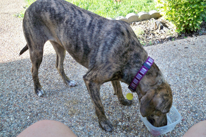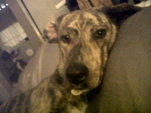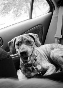 I’d never heard the word “brindle” before. It’s not a mutt-colored coat but instead is a fur-woven pattern of fine silk and sheen. She’s dark brown and she’s light brown with gray-brown eyes. She’s always happy, always eager-to-please. I wonder if I was like that when I was younger. I wonder if she’ll turn out like me when she’s older. If the gray will overwhelm the warmth in the brown in her eyes. If she’ll only regain the twinkle when she’s manic.